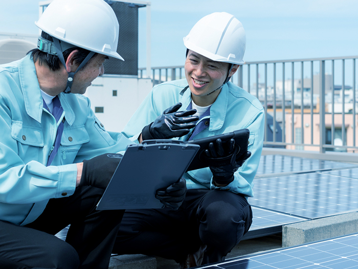 佐藤:僕はできることが増えていくのが楽しい。今は太陽光発電以外の施工も任せてもらえるように頑張ってます。